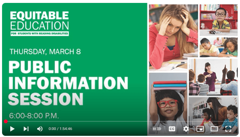 Equitable Education for Students with Reading Disabilities Information Sessions